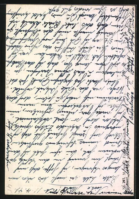 Personenbezogene Daten auf der Rückseite der Karte wurden durch blauen Textmarker unkenntlich gemacht. Die blauen Stellen sind auf die Vorderseite durchgeweicht und wirken sich negativ auf das Postkartenfoto aus