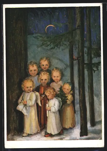 Künstler-AK Maria Spötl: VMS, Engel im Wald