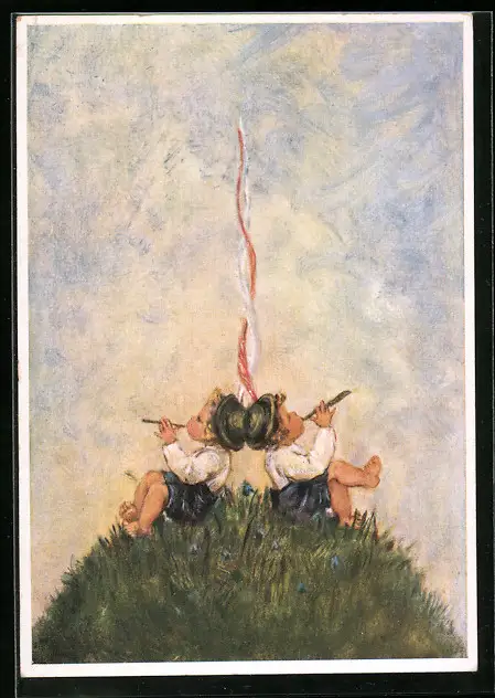 Künstler-AK Maria Spötl: VMS, Knaben spielen Flöte