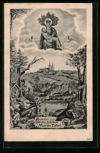 Künstler-AK Maria-Taferl, Ortsansicht mit Gnadenmutter