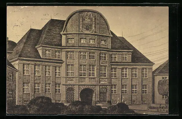Künstler-AK Marne i. Holst., Front des Rathauses