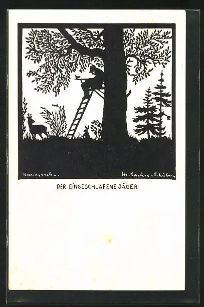 Künstler-AK Marta Sachse-Schubert: Der eingeschlafene Jäger