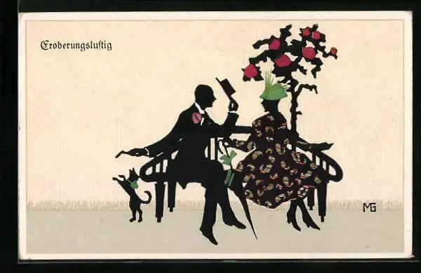 Künstler-AK Marte Graf: Eroberungslustig als Scherenschnitt