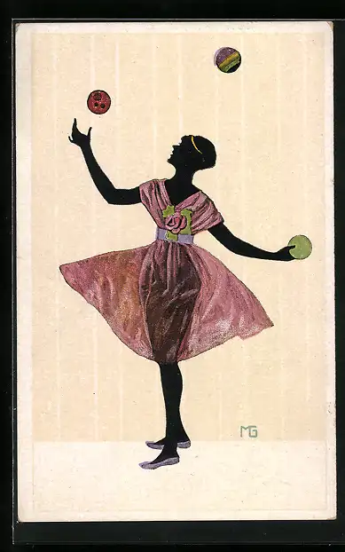 Künstler-AK Marte Graf: Falto-Silhouetten, Frau jongliert mit Bällen