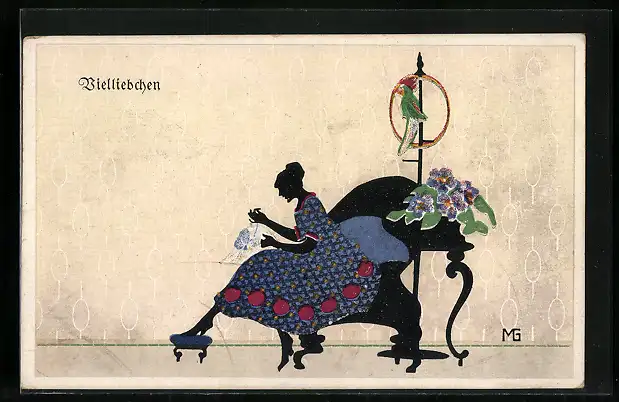 Künstler-AK Marte Graf: Vielliebchen, Scherenschnitt
