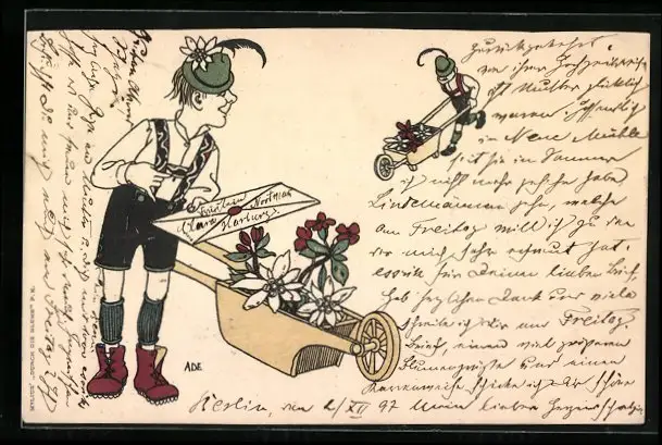 Künstler-AK Mathilde Ade: Karren mit Edelweiss