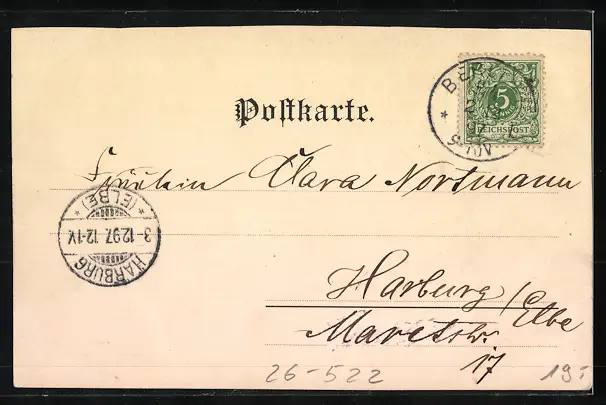 alte Ansichtskarte, gelaufen 1897, obere Kante beschnitten, guter Zustand