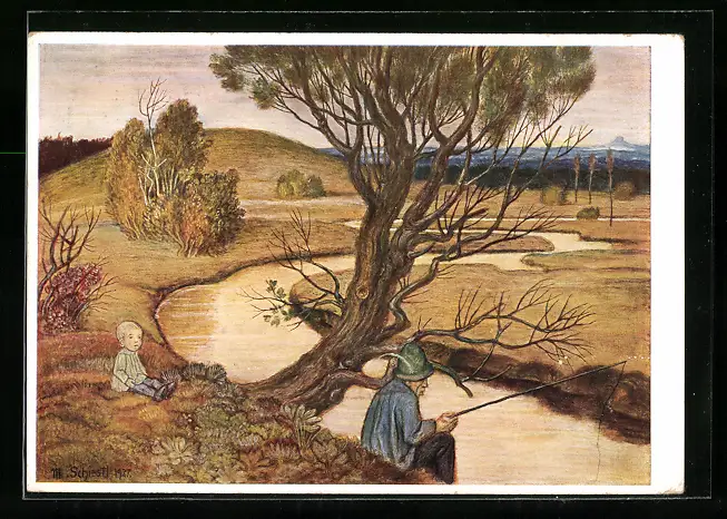 Künstler-AK Matthäus Schiestl: An ruhigen Wassern