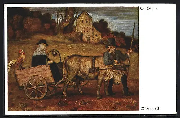 Künstler-AK Matthäus Schiestl: Bauern mit ihrem Rindergespann