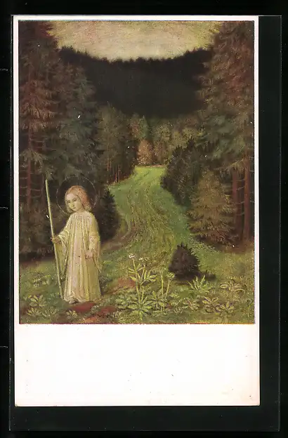 Künstler-AK Matthäus Schiestl: Christkind im Walde, Jesuskind auf Wanderschaft