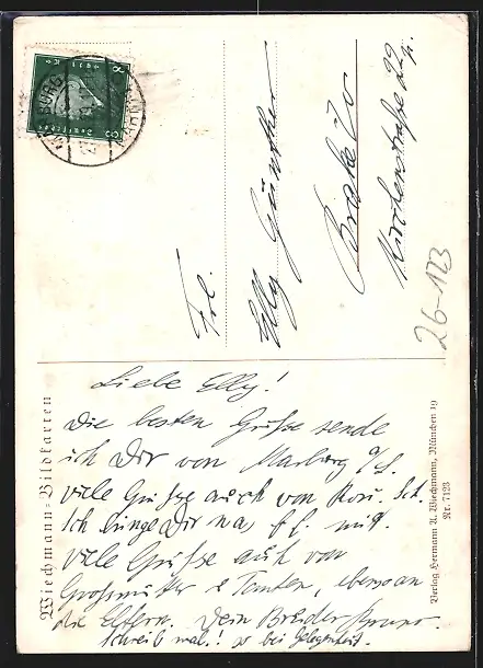 alte Ansichtskarte, gelaufen 1929, Eckknicke oben, guter Zustand