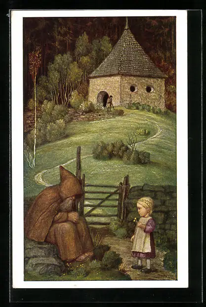 Künstler-AK Matthäus Schiestl: Der Einsiedler und das Kind