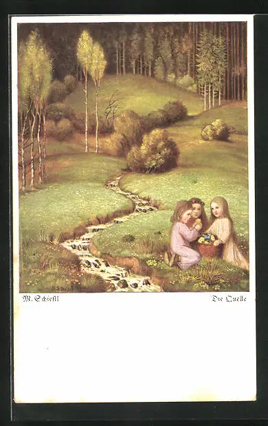 Künstler-AK Matthäus Schiestl: Kinder an einer Quelle