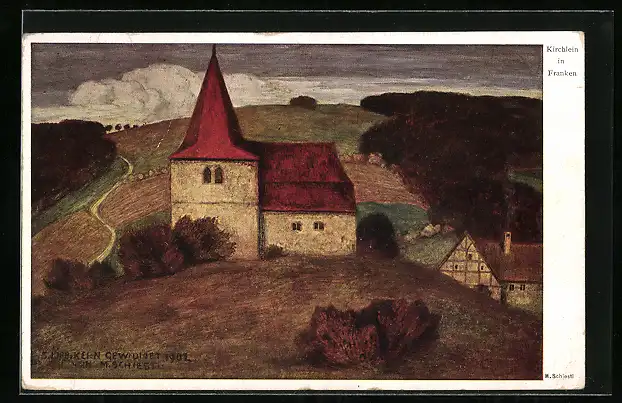 Künstler-AK Matthäus Schiestl: Kirchlein in Franken