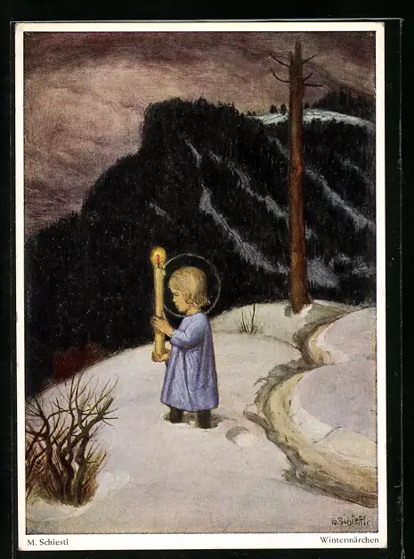 Künstler-AK Matthäus Schiestl: Wintermärchen - Christkind mit Kerze