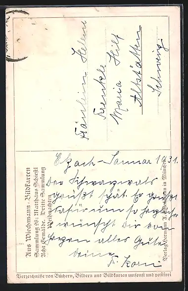 alte Ansichtskarte, gelaufen 1931, Briefmarke entfernt, Bugspur re. oben, guter Zustand