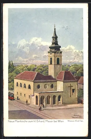 Künstler-AK Mauer, Neue Pfarrkirche zum hl. Erhard