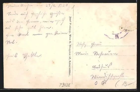 alte Ansichtskarte, gelaufen 1920, Briefmarke entfernt, rückseitig Oberflächenschaden, guter Zustand