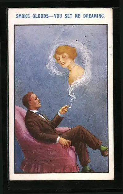 Künstler-AK Maurice: Frau erscheint aus Qualm einer Zigarette