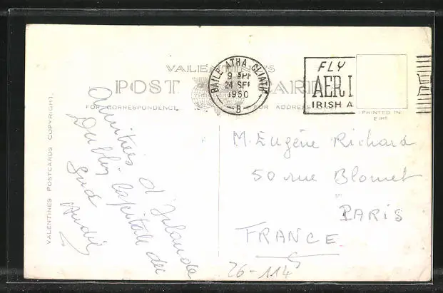 gelaufen 1950, Briefmarke entfernt, Stempelspur, sonst guter Zustand