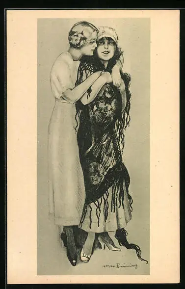 Künstler-AK Max Brüning: Zwei junge Frauen in Umarmung