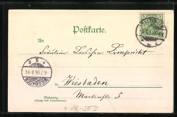 alte Ansichtskarte, gelaufen 1904, Bugspur unten mittig, guter Zustand