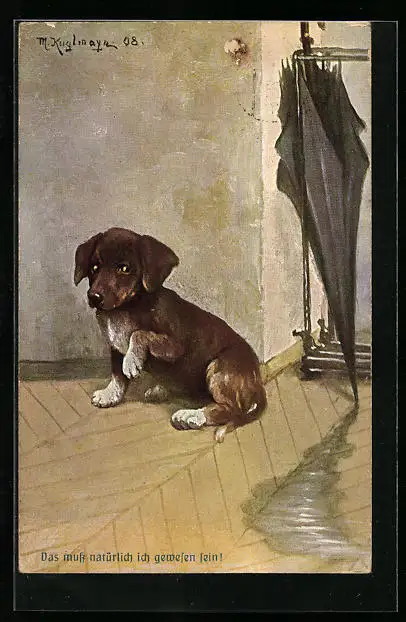 Künstler-AK Max Kuglmayr: Hund neben einer Pfütze