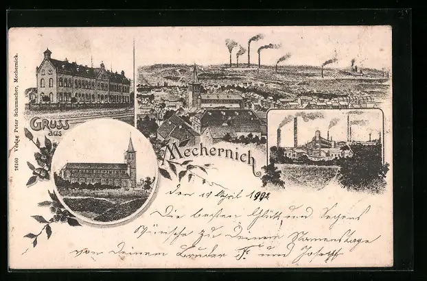 Künstler-AK Mechernich, Totalansicht der Stadt