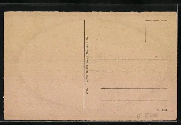 Personenbezogene Daten auf der Rückseite der Karte wurden durch blauen Textmarker unkenntlich gemacht. Die blauen Stellen sind auf die Vorderseite durchgeweicht und wirken sich negativ auf das Postkartenfoto aus