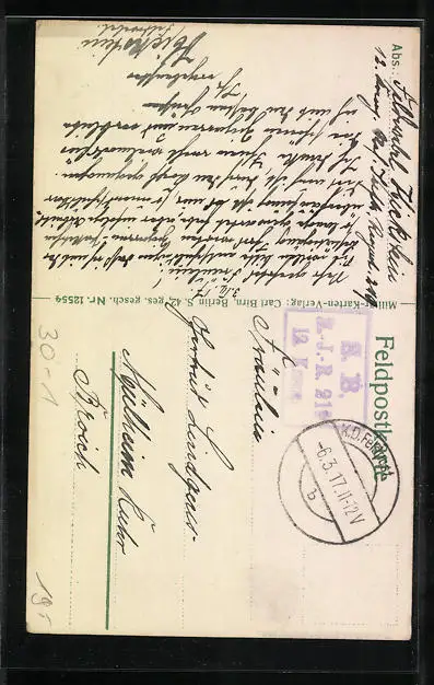 alte Ansichtskarte, gelaufen 1917 als Feldpost, guter Zustand