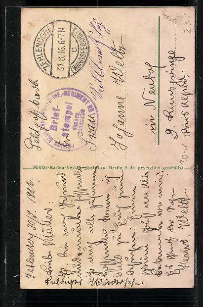 gelaufen 1916 als Feldpost, Einriss links mittig, guter Zustand