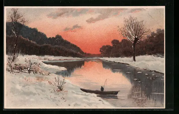 Künstler-AK Meissner & Buch (M&B) Nr. 1536: Angler an einem Winterabend