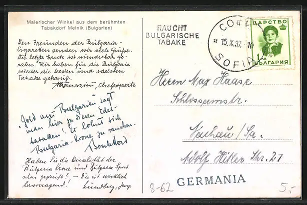 gelaufen 1937, Ecken rechts bugig, sonst guter Zustand