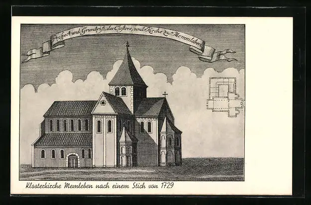 Künstler-AK Memleben, Klosterkirche nach einem Stich von 1729