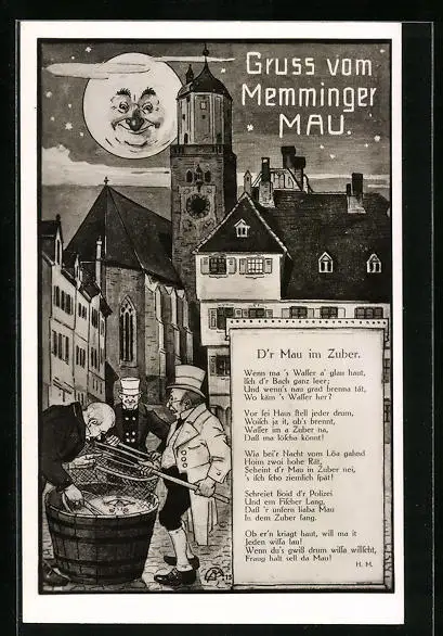 Künstler-AK Memmingen, Fischen nach dem Mau im Zuber
