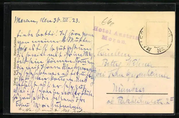 alte Ansichtskarte, gelaufen 1923, Briefmarke entfernt, guter Zustand