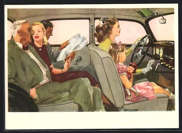 Künstler-AK Mercedes-Benz Typ 170 S, Familie im Auto