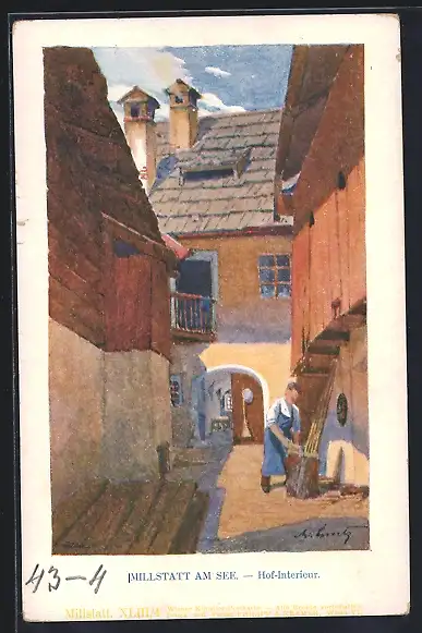 Künstler-AK Millstatt a. See, Hof-Interieur, Handwerker bei der Arbeit