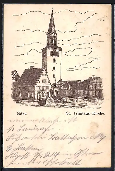 Künstler-AK Mitau, St. Trinitatis-Kirche