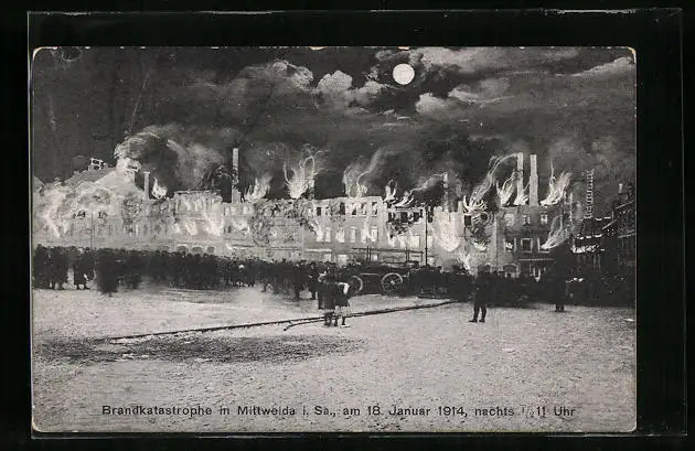 Künstler-AK Mittweida i. Sa., Brandkatastrophe am 18. Januar 1914