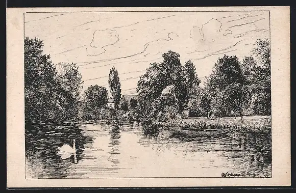 Künstler-AK Moers, Partie am Stadtgraben