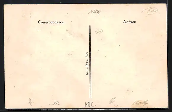 Personenbezogene Daten auf der Rückseite der Karte wurden durch blauen Textmarker unkenntlich gemacht. Die blauen Stellen sind auf die Vorderseite durchgeweicht und wirken sich negativ auf das Postkartenfoto aus