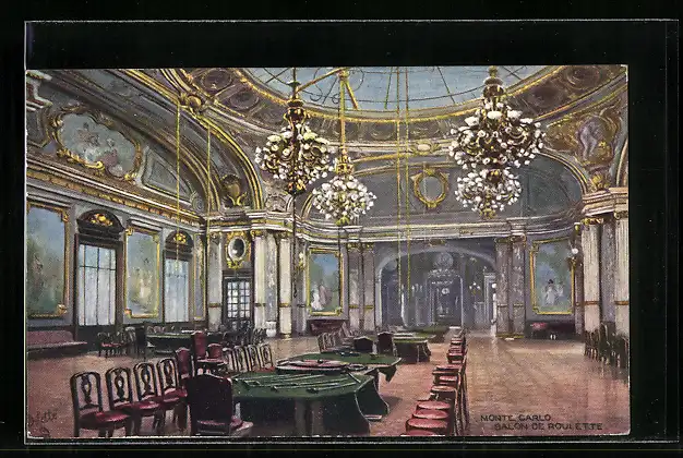 Künstler-AK Monte Carlo, salon de roulette