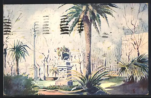 Künstler-AK Montevideo, Plaza Cagancha, Monumento a la Libertad
