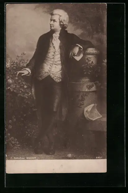 Künstler-AK Mozart in Gedanken versunken in einem Garten