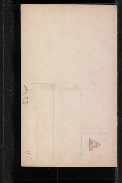 Personenbezogene Daten auf der Rückseite der Karte wurden durch blauen Textmarker unkenntlich gemacht. Die blauen Stellen sind auf die Vorderseite durchgeweicht und wirken sich negativ auf das Postkartenfoto aus