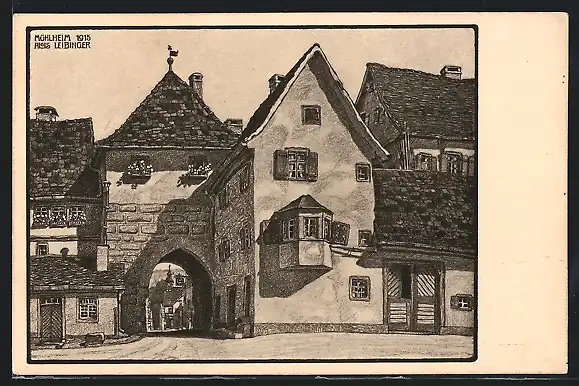 Künstler-AK Mühlheim a. Donau /Württ., Ortspartie