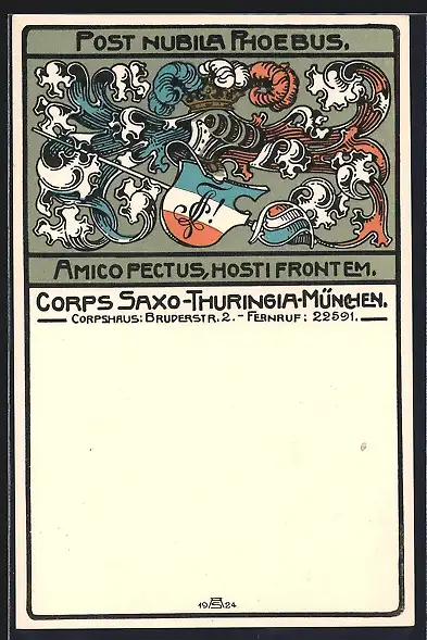 Künstler-AK München, Corps Saxo-Thuringia, Studentenwappen