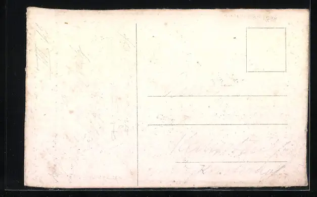 Personenbezogene Daten auf der Rückseite der Karte wurden durch blauen Textmarker unkenntlich gemacht. Die blauen Stellen sind auf die Vorderseite durchgeweicht und wirken sich negativ auf das Postkartenfoto aus