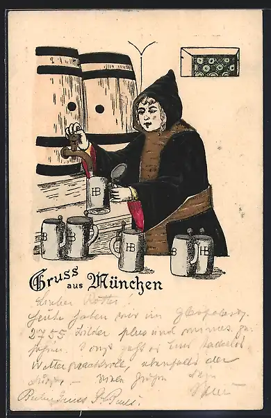 Künstler-AK München, Münchner Kindl beim Bierzapfen